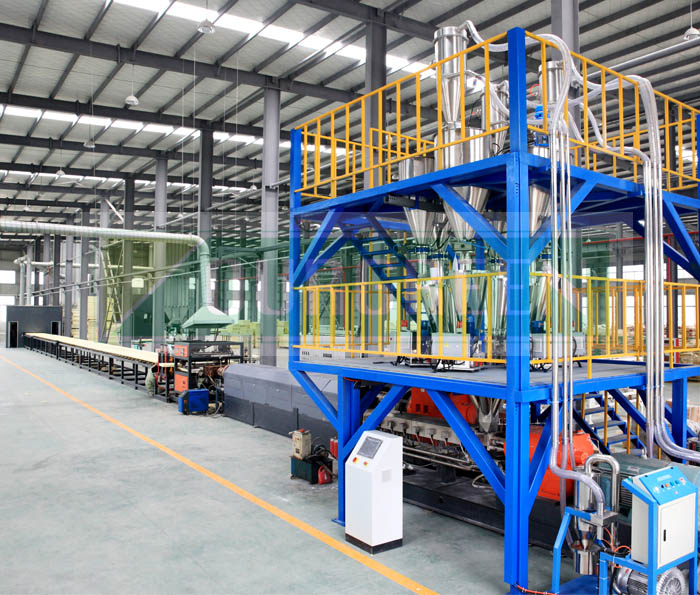 目前,擠塑板的應用越來越多,南京歐格是XPS擠塑板及生產線一體化的企業,在XPS擠塑板生產線上具有規模優勢,并且擠塑板質量比較穩定。整套XPS擠塑板生產線,由上料系統,擠出系統,發泡劑注入系統,成型系統和輔機系統,電氣控制系統組成。